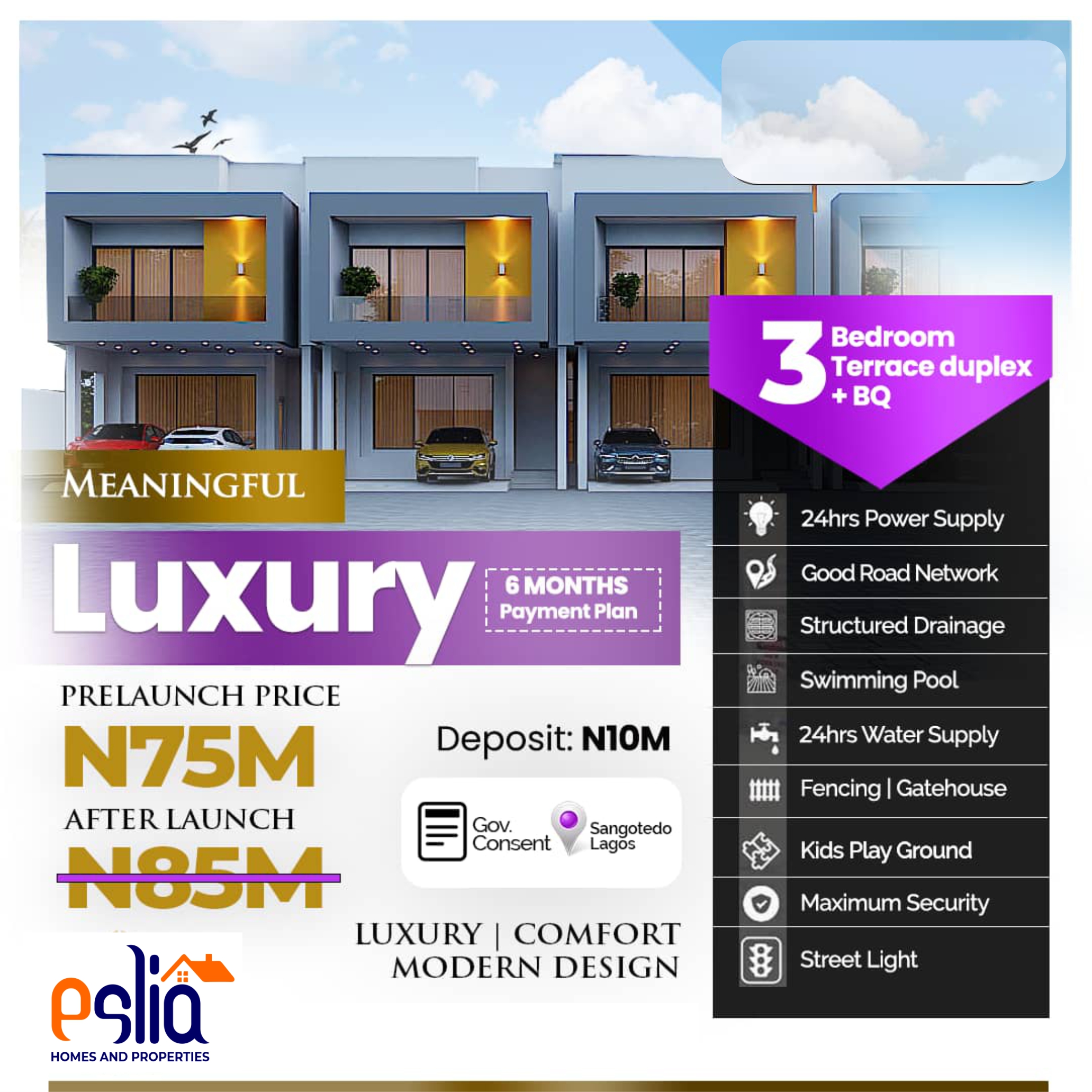 Nestled amidst the serene landscapes of Sangotedo Lagos.The Zularich Residence stands as a testament to architectural brilliance and contemporary luxury. Boasting unparalleled craftsmanship and meticulous attention to detail, this residence offers a harmonious blend of sophistication and comfort. With its spacious interiors, panoramic views, and state-of-the-art amenities, the Zularich Residence redefines modern living, providing a sanctuary where every moment is infused with elegance and tranquility.