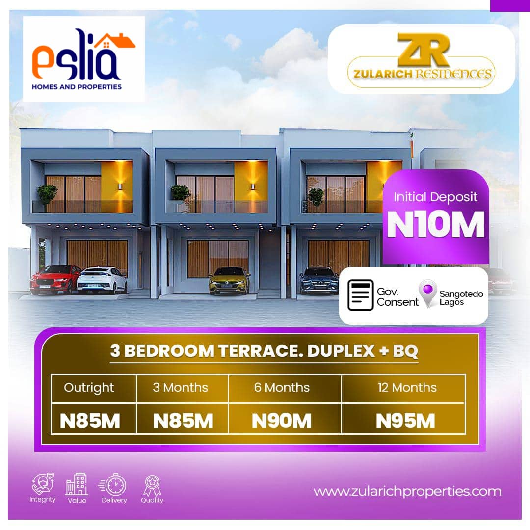 Nestled amidst the serene landscapes of Sangotedo Lagos.The Zularich Residence stands as a testament to architectural brilliance and contemporary luxury. Boasting unparalleled craftsmanship and meticulous attention to detail, this residence offers a harmonious blend of sophistication and comfort. With its spacious interiors, panoramic views, and state-of-the-art amenities, the Zularich Residence redefines modern living, providing a sanctuary where every moment is infused with elegance and tranquility.